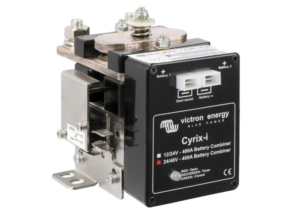 De Cyrix accuscheider is een door een microprocessor gestuurd relais voor zware toepassingen die accu’s automatisch parallel schakelt als één van de accu’s de vooraf ingestelde spanning heeft bereikt (waarmee wordt aangegeven dat de accu wordt opgeladen) en deze loskoppelt als de spanning onder het druppellaadniveau daalt (waarmee wordt aangegeven dat één of meer accu’s worden ontladen). Cyrix accuscheiders zijn een uitstekend alternatief voor diodelaadstroomverdelers. De hoofdeigenschap is dat het spanningsverlies praktisch nihil is, waardoor de uitgangsspanning van dynamo’s of acculaders niet verhoogd hoeft te worden.