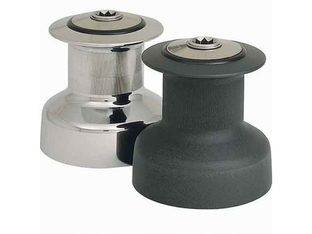Model W8 heeft een centrale as van RVS, een bronzen voet en een zwartgeanodiseerde aluminium (AL) of brons-verchroomde* (BC) gelagerde trommel