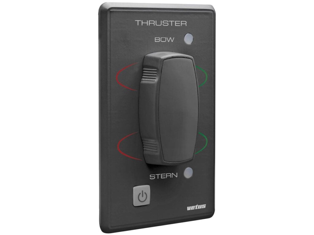 Dit paneel met zwenkknop maakt de soepele bediening van een boegschroef en een hekschroef mogelijk. Waterdicht volgens IP67. 12/24V