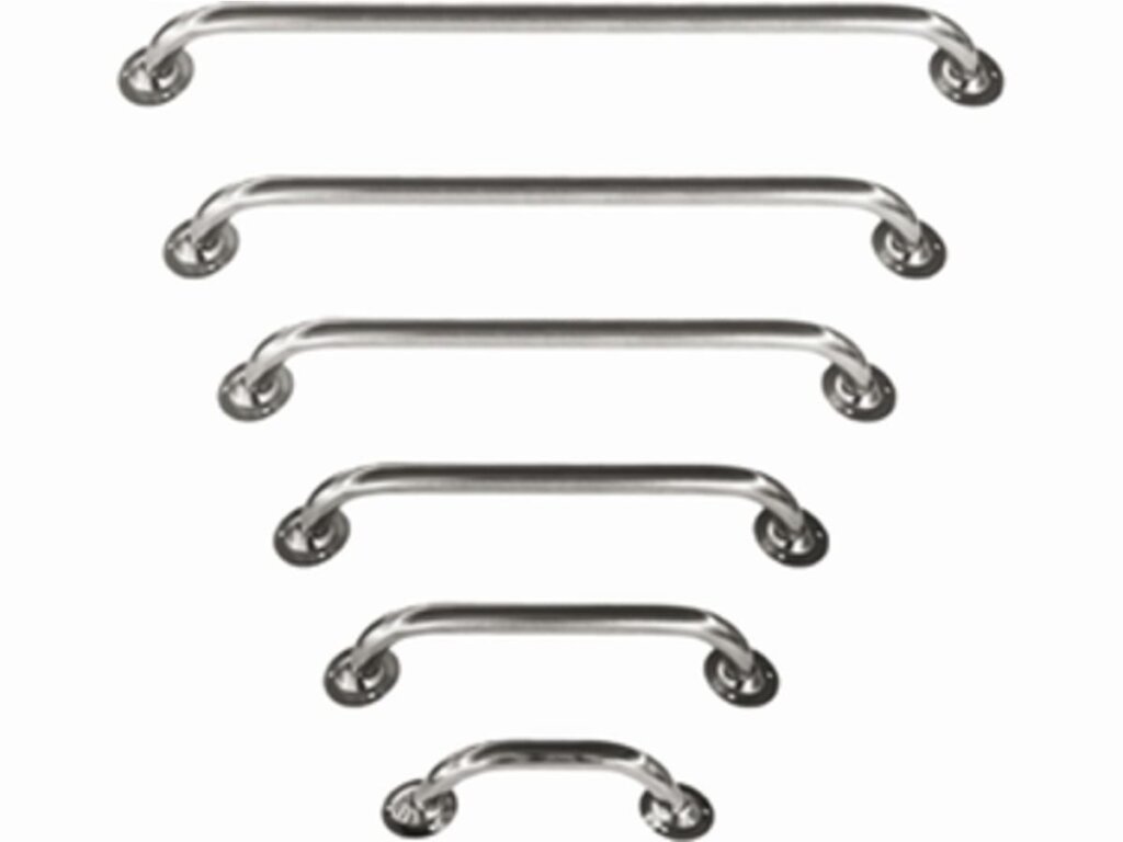 Handrailing met voetplaat. RVS 316, buis diameter Ø 22 mm.