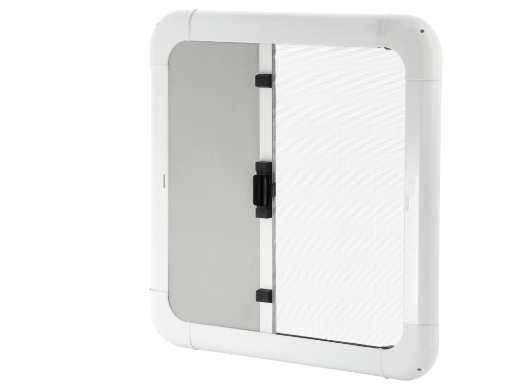 Een combinatie van rolhor- en verduistering, speciaal ontworpen voor vlucht- en ventilatieluiken. Slank ontwerp met optimaal zicht, met aangepaste hoeken voor een langere levensduur. Voorzien van een sterke en goed bereikbare veer die handmatig op spanning kan worden gebracht. Het luik wordt verduisterd door de hendel naar de ene kant te ‘swipen’. Door de hendel naar de andere kant te ‘swipen’ rolt het verduisteringsgordijn op en komt de hor tevoorschijn. De magnetische hendel kan worden losgemaakt om zowel het gordijn als de hor in te laten rollen.