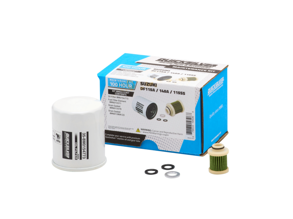 Quicksilver® 100-Uur Onderhoudskits bevatten alle onderdelen die nodig zijn voor een 100-uur of jaarlijks onderhoud, alles in één handige set.