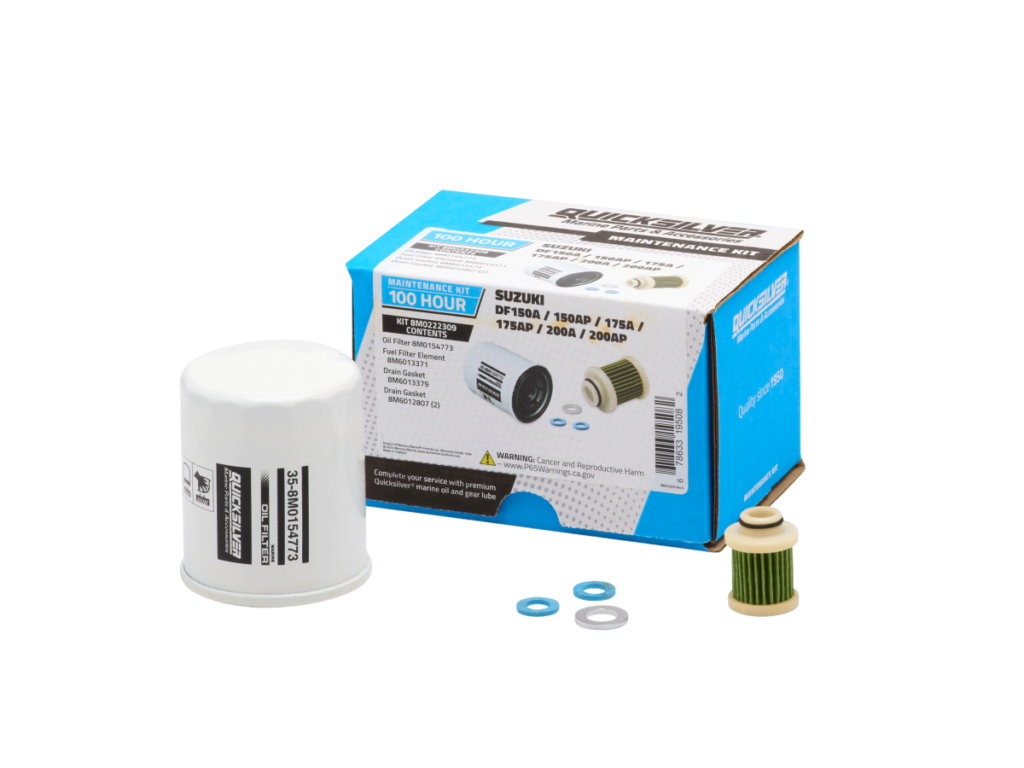 Quicksilver® 100-Uur Onderhoudskits bevatten alle onderdelen die nodig zijn voor een 100-uur of jaarlijks onderhoud, alles in één handige set.