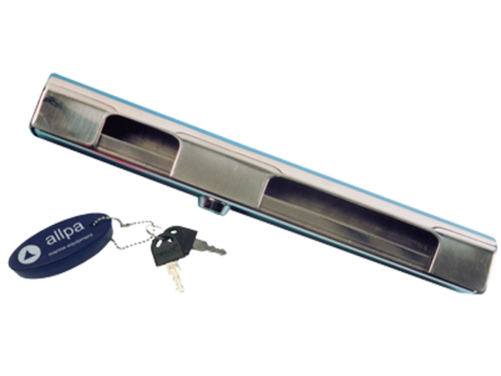 Past op praktisch elke buitenboordmotor. Vervaardigd van gepolijst roestvast staal (AISI 316). Uiterst solide door dichtgelaste hoeken en door cilinderslot. Materiaaldikte 2 mm. Rammelvrij. Compleet met sleuteldrijver.