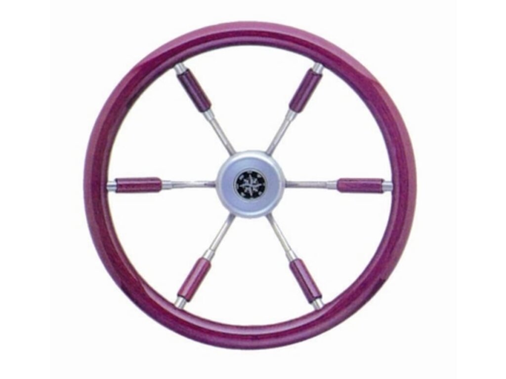 Stuurwiel 390 mm, RVS/ mahonie rand /6-Spaaks RVS stuurwiel rand en deels spaken van mahonie