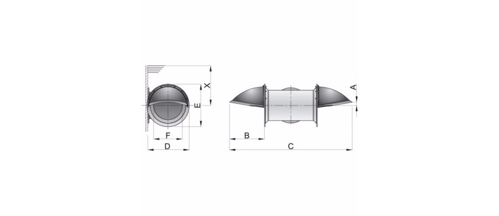 Maat X (= 1/2 F + A) min. in mm, zie tekening 102
