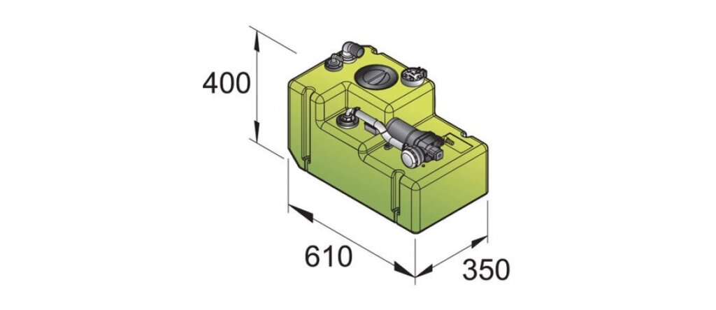 Deze hoogwaardige synthetische tank voor drinkwater wordt geleverd met een elektrische pomp die automatisch inschakelt wanneer de druk in het systeem wegzakt (bijvoorbeeld wanneer een kraan wordt geopend).