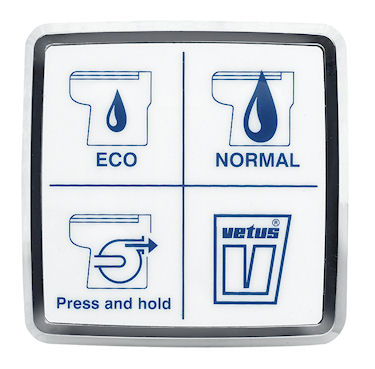 - Alle VETUS 12/24 Volt scheepstoiletten hebben een dubbel spoelsysteem. De afvoerpomp vermaalt en verpompt de inhoud van het toilet in ongeveer 7 seconden in geval een ”NORMAL” spoelgang en in ongeveer 3 seconden in het geval van een ”ECO” spoelgang. Dat alles geschiedt bovendien nagenoeg geruisloos. (61 dB(A)).
