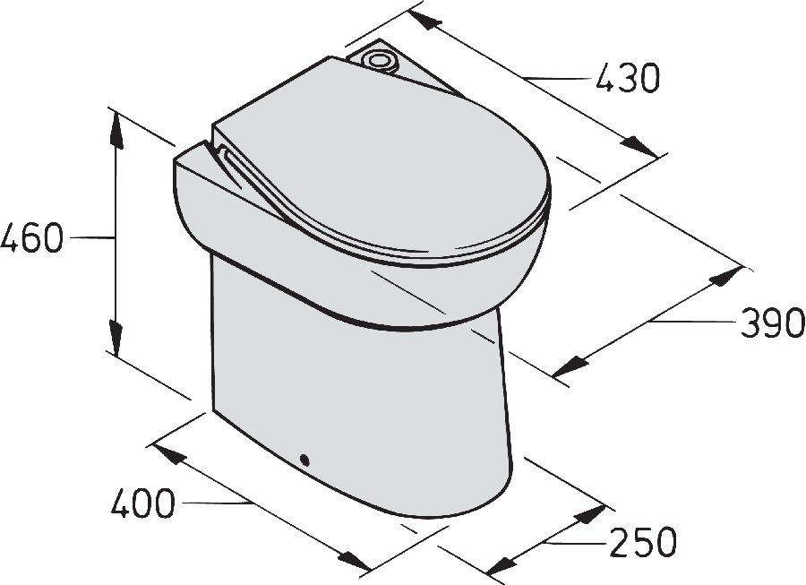 - De diameter van de afvoerslang is slechts 19 mm inwendig. Hierdoor kan het toilet eenvoudig en goedkoop op de vuilwater tank worden aangesloten, door middel van een VETUS Ø 19 mm geurdichte vuilwaterslang, type SAHOSE .