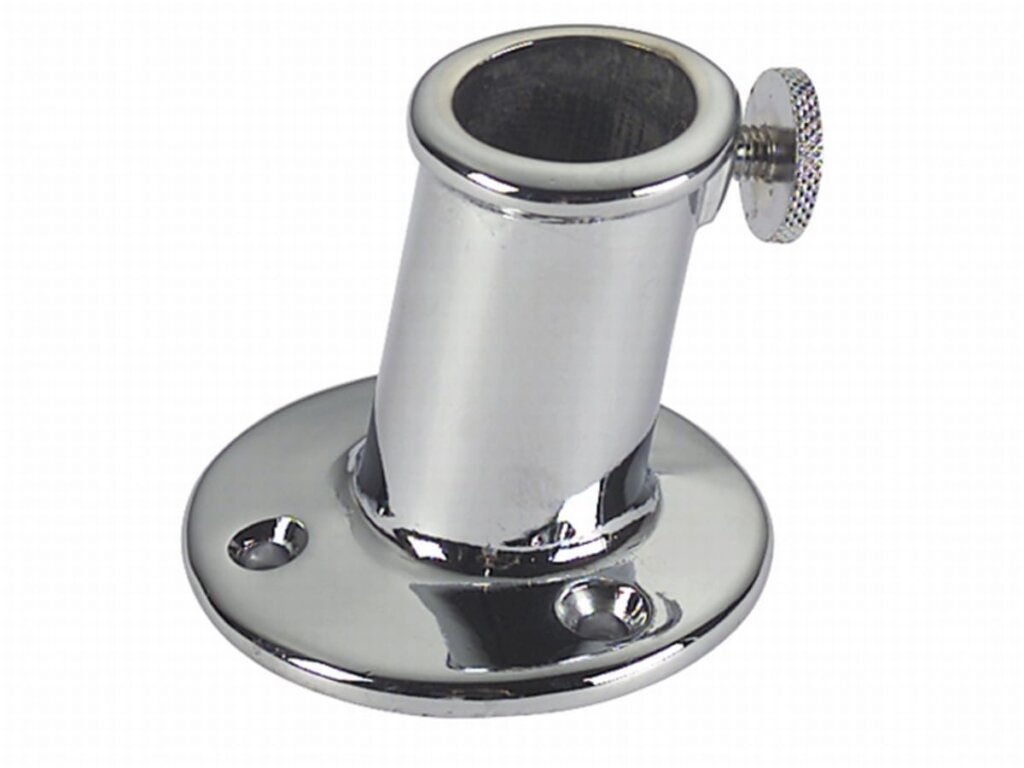 Messing verchroomde vlaggenstokhouder met schroef voor borging van de vlaggenstok.
