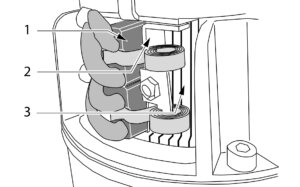 - Reinig de koolborstels (1), de borstelhouders (2) en de collector (3). (Blaas het van de koolborstels vrijgekomen stof weg.)