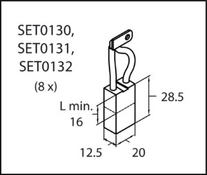 Voor de artikelcode van vervangende koolborstelsets raadpleeg de pagina met ‘Serviceonderdelen’ in de handleiding van uw boegschroef.
