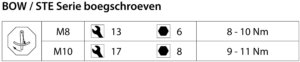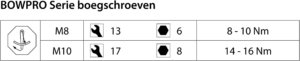 - 16 mm voor de boegschroeven 95 kgf en groter